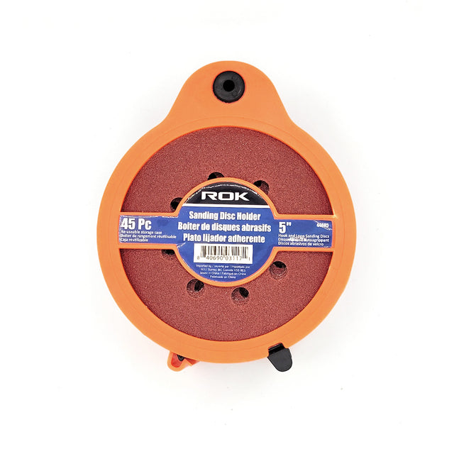 The ROK 44695 is a 45-piece 5-inch sanding disc set designed for efficient sanding projects.