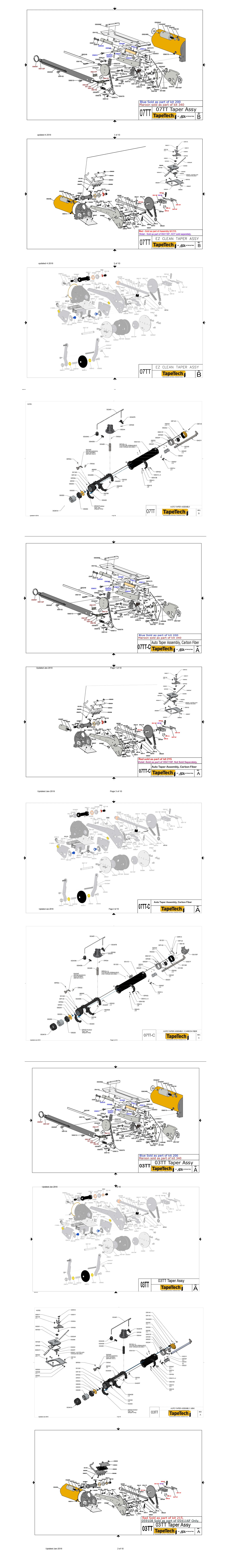 Repair Parts for the TapeTech Mini Taper (03TT), Easy Clean Taper (07TT), and Carbon Fiber Taper(07TT-C).