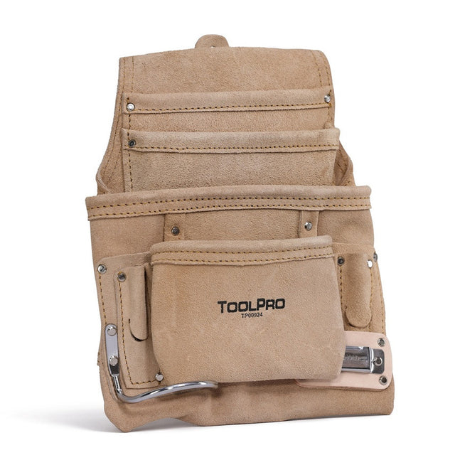 A 10-pocket nail and tool bag that will carry all the fasteners and tools you need for your next hanging job. The same design as the TP00923 but made with excellent suede leather for a softer touch. This bag will last you a long, long time.