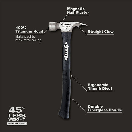 Stiletto 16oz Smooth Face Titanium Fiberglass Hammer
