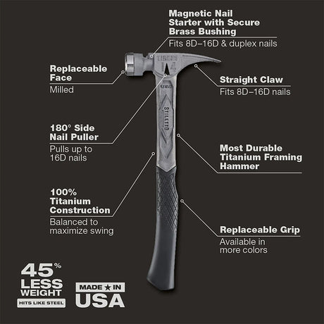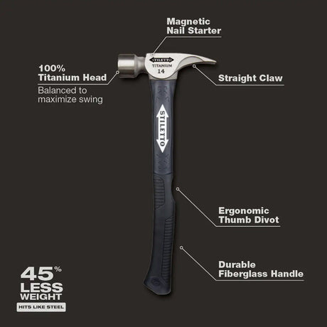 Stiletto 16oz Milled Face Titanium Hickory Hammer