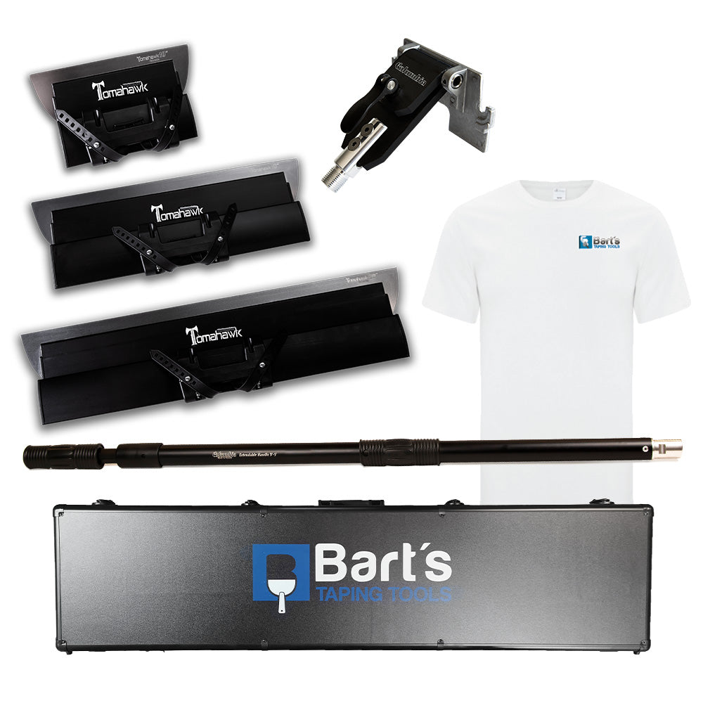 The Columbia 5-Piece Tomahawk Set With Case features a range of tomahawk sizes - 10", 18", and 24" - as well as a Columbia ONE Extendable Handle and Tomalock Adapter, all carefully stored in a durable Bart's Black Aluminum Tool Case.