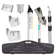 This kit includes an Excalibur Inside Applicator, an Excalibur Flat Applicator, a 42" Compound Tube, a Circle Brand Extendable Inside Corner Roller with Extendable Handle, a Circle Brand Flusher Handle, and Excalibur 2.5" and 3.5" Flushers. It also comes with a durable Hard Shell Case for storage and transportation.