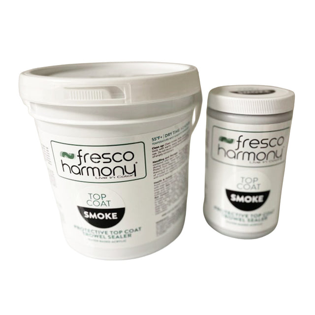 Fresco Harmony Topcoat is applied using a pallet knife. Hold the trowel at a 60 degree angle and scrape a very thin layer of the clear coat onto the dry Fresco Harmony finish. Scrape off any excess using a clean trowel and let this coat dry. This application will darken the color slightly and dry to a sheen. The Topcoat can be slightly polished once it is dry by rubbing it with the flat side of a clean trowel.