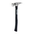 The STILETTO® 14oz Titanium Fiberglass Hammer with Smooth Face and 16" Curved Handle is more durable and has more prying strength than hickory handled hammers. This 14oz titanium hammer hits like a 24oz steel hammer with 45% less weight. It is recommended for rough framing and remodeling. The Titanium Fiberglass Hammer includes a magnetic nail starter and durable fiberglass handle with an ergonomic thumb divot.