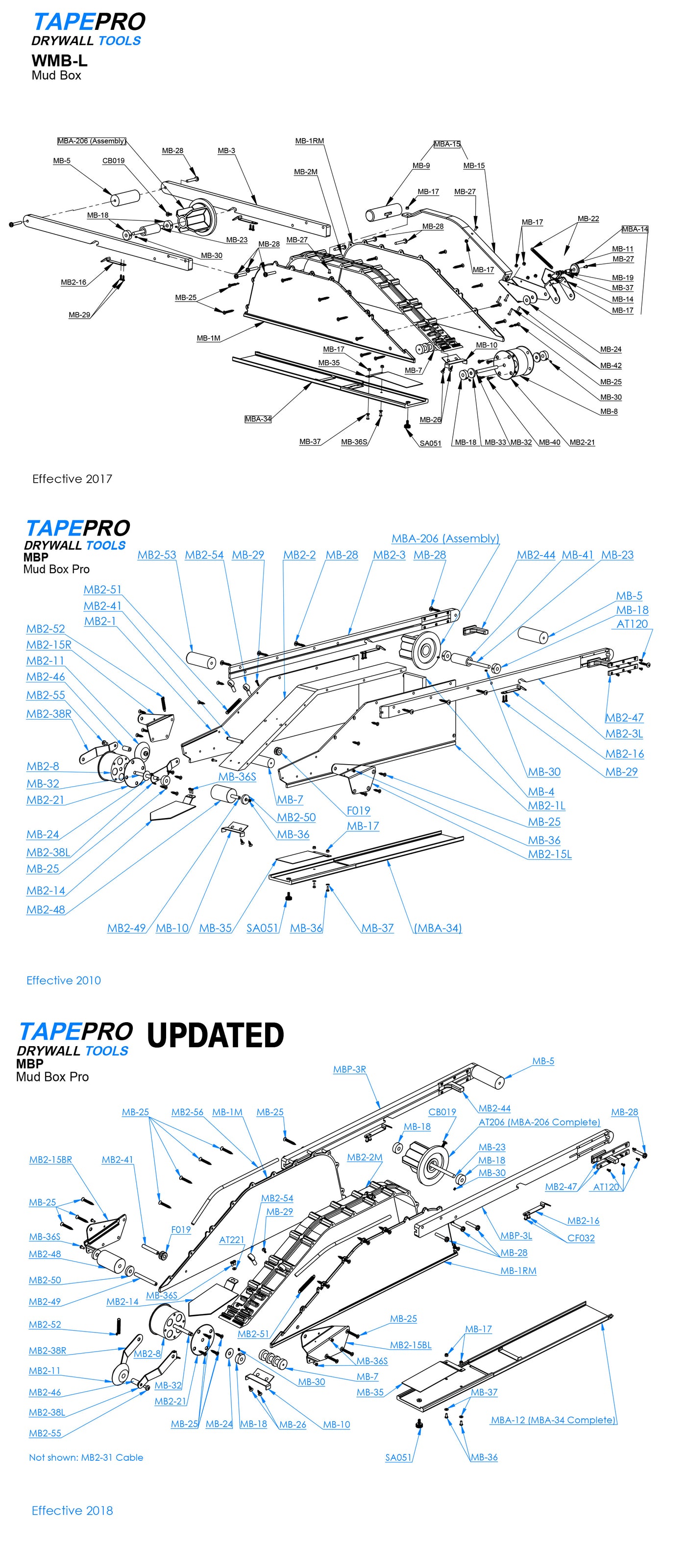 Repair parts for the TapePro Mud Box and Mud Box Pro: WMB-L & MBP
